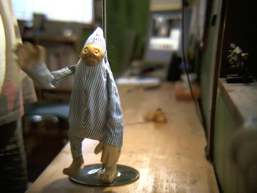 はじめて操り人形をつくった。制作の一部始終はUSTREAMにて配信していたので、完成後に編集、早送り映像にまとめた。 映像のコメントから “ 24時間Ust制作からスタートしたはじめてのマリオネット制作。 冒頭の20秒く